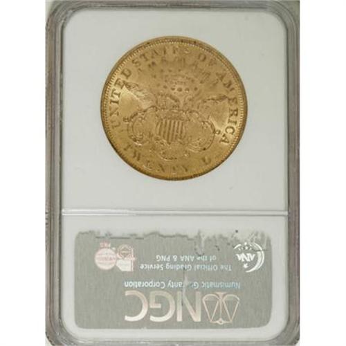 <B>1873 $20 Open 3 AU58 NGC.</B></I> NGC Census: (1871/3228). PCGS Population (590/2399). Numismedia Wsl. Price for NGC/PCGS coin in AU58: $830. (#8967)<BR><BR><B>Coin Engraver:</B> James B. Longacre<BR><BR><b>Shipping:</b> Coins & Currency (<a target="_blank" href="http://www.heritageauctions.com/common/shipping.php">view shipping information</a>)