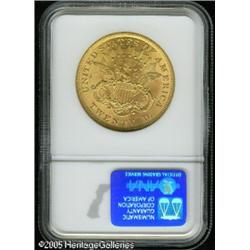 <B>1873 $20 Open 3 MS60 NGC.</B></I> A well struck and lustrous example that lacks the usually encountered bagmarks. The reverse near 5 o'clock has a pair of short pinscratches, and there are a few miniscule planchet flaws (as made) between stars 4 and 5. Lot:9065