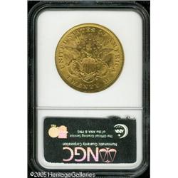 <B>1873 $20 Open 3 MS61 NGC.</B></I> Attractive golden-orange color but rather lackluster. A couple of abrasions are located in the obverse fields.<BR><I>From The Richard J. Chouinard Collection of United States Coins, Part Two.</B></I> Lot:9067