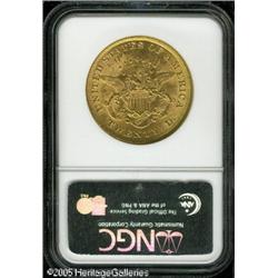 <B>1873 $20 Open 3 MS61 NGC.</B></I> Full, satiny luster over both sides, with slight softness on the obverse highpoints. The obverse is moderately abraded, while the reverse only has a few superficial marks. For the type collector, here is an affordable Type Two Double Eagle without leaving the Mint State category.<BR><I>From The Richard J. Chouinard Collection of United States Coins, Part Two.</B></I> Lot:9069