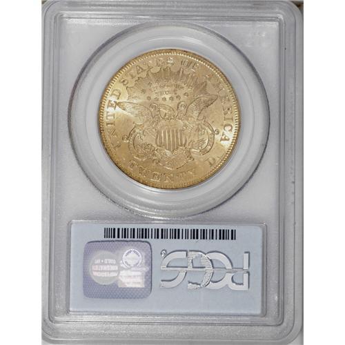 <B>1873 $20 Open 3 MS62 PCGS.</B></I> This honey-orange example has soft luster but well-defined devices. Light abrasions pepper the surfaces, and a rim bruise appears near 11 o'clock on the obverse.<BR><BR><b>Shipping:</b> Coin/Currency (<a target="_blank" href="http://www.heritageauctions.com/common/shipping.php">view shipping information</a>)