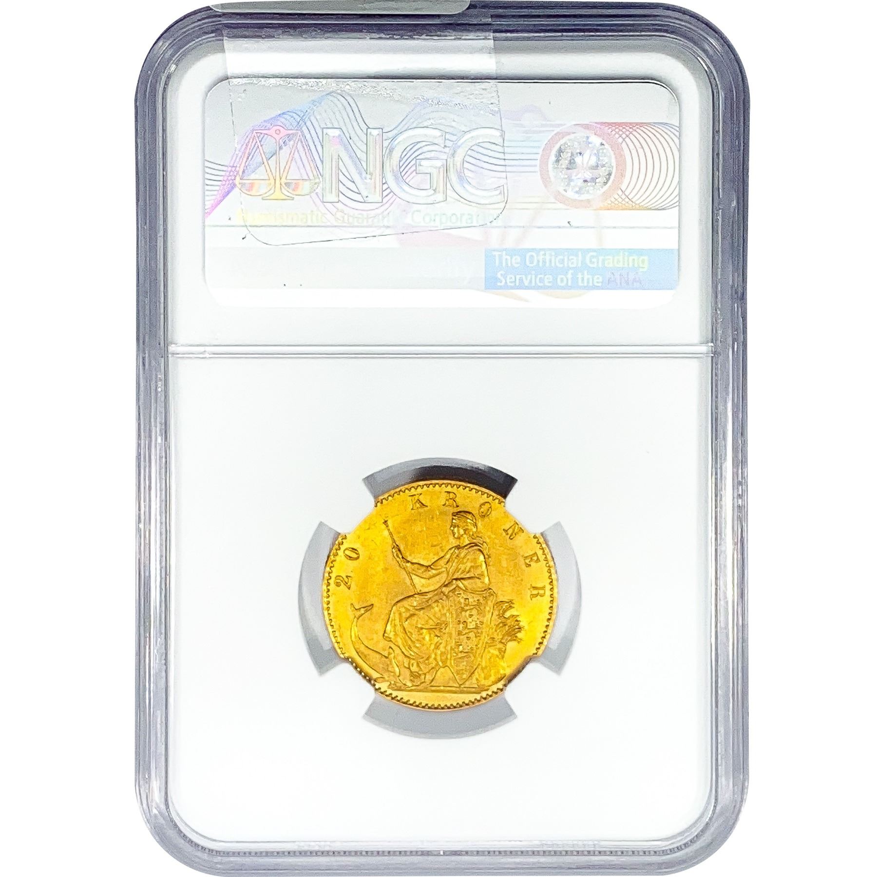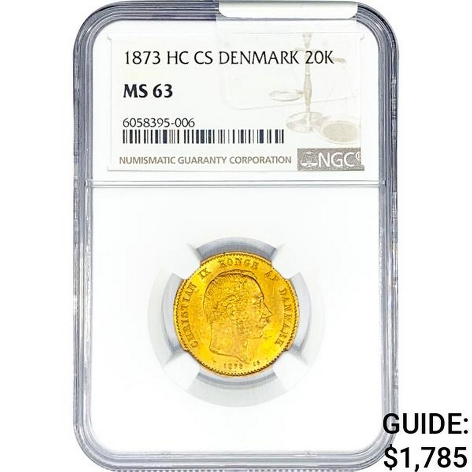 1873 .2593oz. Gold HC CS Denmark 20 Kroner NGC MS6