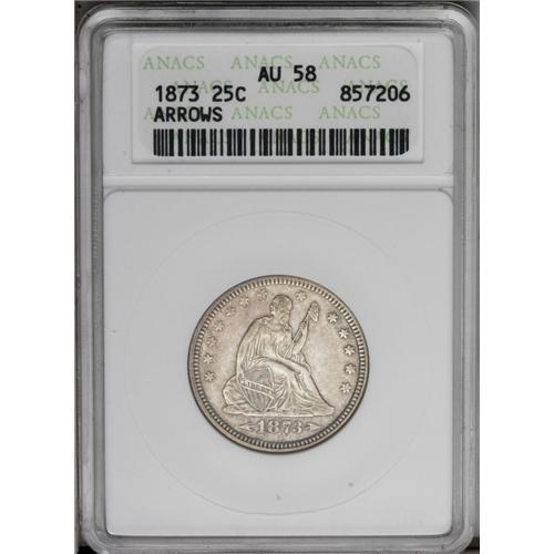 1873 25C Arrows AU58 ANACS. A pleasing near-Mint examp 1873[25C] Arrows AU58 ANACS.