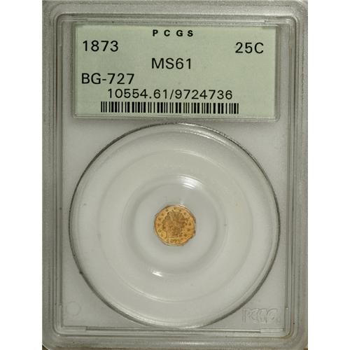 <B>1873 25C Liberty Octagonal 25 Cents, BG-727, High R.4, MS61 PCGS.</B></I> PCGS Population (1/51). NGC Census: (0/3). (#10554)<BR><BR><b>Shipping:</b> Coins & Currency (<a target="_blank" href="http://www.heritageauctions.com/common/shipping.php">view shipping information</a>)
