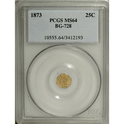1873 25C Liberty Octagonal 25 Cents, BG-728, R.3, MS64