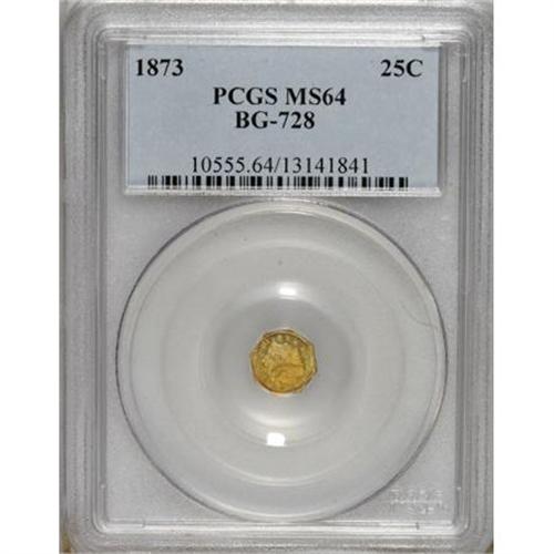 <B>1873 25C Liberty Octagonal 25 Cents, BG-728, R.3, MS64 PCGS.</B></I> PCGS Population (48/61). NGC Census: (1/4). (#10555)<BR><BR><b>Shipping:</b> Coins & Currency (<a target="_blank" href="http://www.heritageauctions.com/common/shipping.php">view shipping information</a>)
