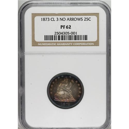 1873 25C No Arrows PR62 NGC. Despite the lower grade o