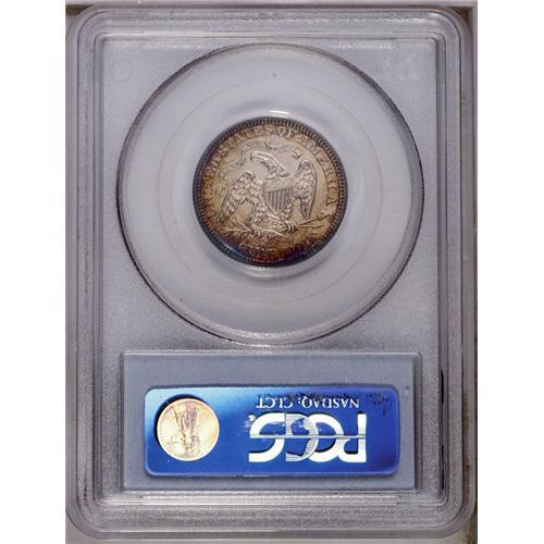 <B>1873<25C> No Arrows PR64 PCGS.</B></I> Sharply struck with deeply mirrored fields and no significant imperfections. Both sides exhibit a blend of reddish-gold and cobalt-blue patina. Population: 34 in 64, 14 finer (3/06).