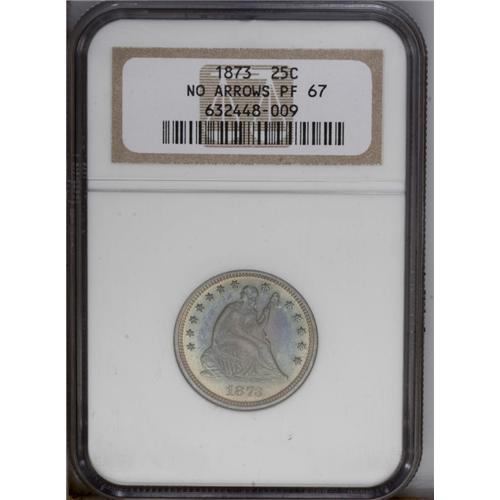 1873 25C No Arrows PR67 NGC. Dark smoky-blue on both s 1873[25C] No Arrows PR67 NGC.