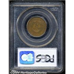 <table><tr><td><table><tr><td>1873 2C Closed 3 PR50 PCGS. Since the 1873 is a final year, proof-only issue, this chocolate-brown specimen may have been carried as a pocket piece for a short duration. There are no unpleasant contact marks, and only a trace of verdigris within the left side of the obverse wreath. <BR><BR><B>Important notice:</B> Heritage usually auctions material at the rate of 200-250 lots per hour. On some occasions eBay Live bid software or the Internet may not be able to keep up with the pace of the auction. We recommend placing a realistic absentee bid now as insurance to avoid disappointment. Occasionally the auctioneer may eliminate or reject an eBay Live bid, and the auctioneer may also reopen a lot after the close of the eBay live bidding (usually because we missed an audience bid), and may reject your bid even if it shows you as the winning bidder. By bidding via eBay Live, you agree that Heritage may award the lot to another bidder at its sole discretion under the circumstances described above or any other reasonable circumstances. Since eBay bids are not shown to us until we open the lot on the floor, we treat those bids just like floor bids. In most cases the floor responds before the eBay bid is presented to us, due to Internet lag time, so for consistency we have made it a policy that floor bids are always considered first over tie eBay live bids. Also please note that all Heritage lots purchased through eBay Live carry a 20% Buyer's Premium. Please make sure you read the Terms and Conditions before you bid. <BR><BR><B>IMPORTANT ANNOUNCEMENT ABOUT RESERVES:</B> Heritage now divulges all reserves on its web site 7 days before every auction. If you want to know whether the reserve on this lot has been met, and if not, what the reserve amount is, please visit this lot page on the HeritageCoin.com web site, or email: bid@HeritageGalleries.com </span></font></td></tr></table></td></tr></table>