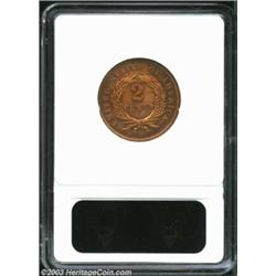 1873 2C Closed 3 PR62 Red and Brown ANACS. Bright orange-gold color, with a blush of ruby-red hues n