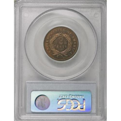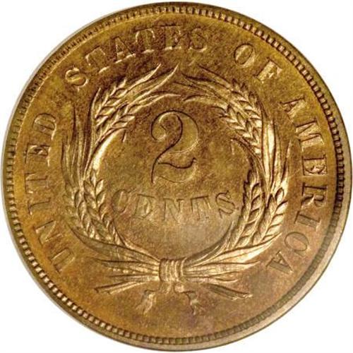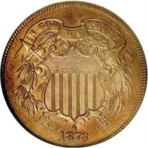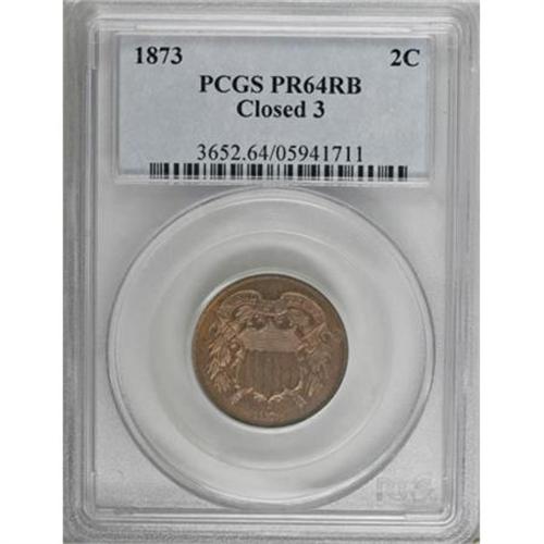 <B>1873 2C Closed 3 PR64 Red and Brown PCGS.</B></I> This was the final year of issue for the short-lived two cent denomination, which was introduced in 1864. Only proofs were produced with the 1873 date, although the Open 3 coins were believed by Walter Breen to be restrikes, possibly from a later time period. This is a well mirrored near-Gem with rich coloration that is more red than brown. The surfaces are blemish-free. <BR><BR><B>Coin Engraver:</B> James B. Longacre<BR><BR><b>Shipping:</b> Coins & Currency (<a target="_blank" href="http://www.heritageauctions.com/common/shipping.php">view shipping information</a>)