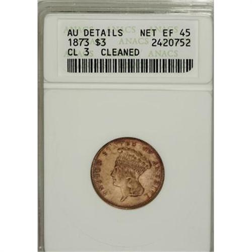 1873 $3 Closed 3--Cleaned--ANACS. AU Details,