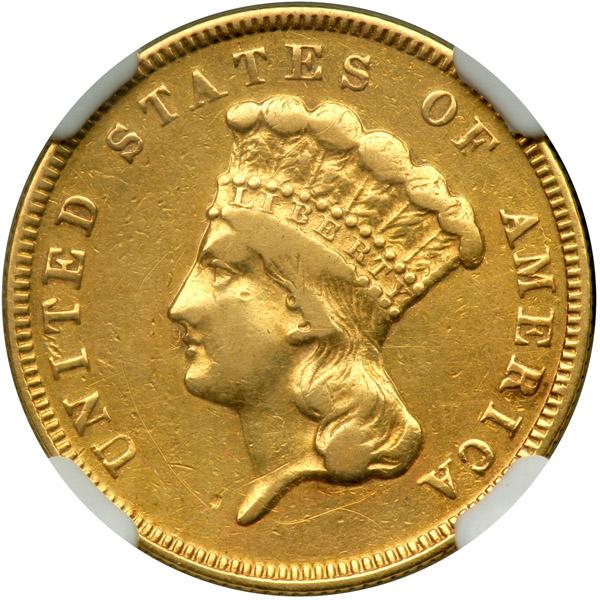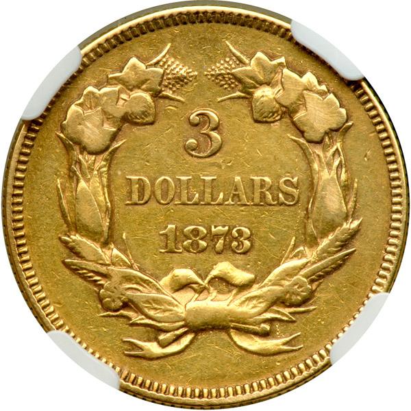 1873. Closed 3. NGC VF Details, improperly cleaned. No glaring problems, nice even wear and probably cleaned with a jeweler's cloth. One of the Key Dates to the series. Easily worth our conservative estimate (PCGS # 7995) .