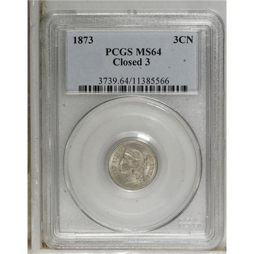 1873 3CN Closed 3 MS64 PCGS. PCGS Population (60/3