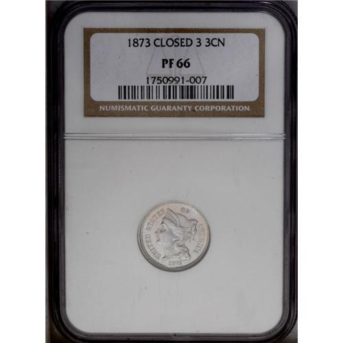 1873 3CN Closed 3 PR66 NGC. Rich sky-blue and peach ir 1873[3CN] Closed 3 PR66 NGC.