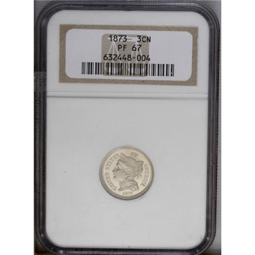 1873 3CN Closed 3 PR67 NGC. A pristine example that re 1873[3CN] Closed 3 PR67 NGC.