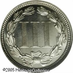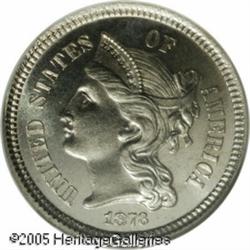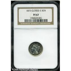 <B>1873 3CN PR67 NGC.</B></I> Closed 3, as are all proofs of this date and denomination. This Superb Gem is fully struck and exquisitely preserved, with mark-free, mildly reflective, and faintly toned surfaces. Population: 3 in 67, 0 finer (1/05).<BR><I>From The Mike Jacobson Collection.</B></I> Lot:5733