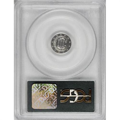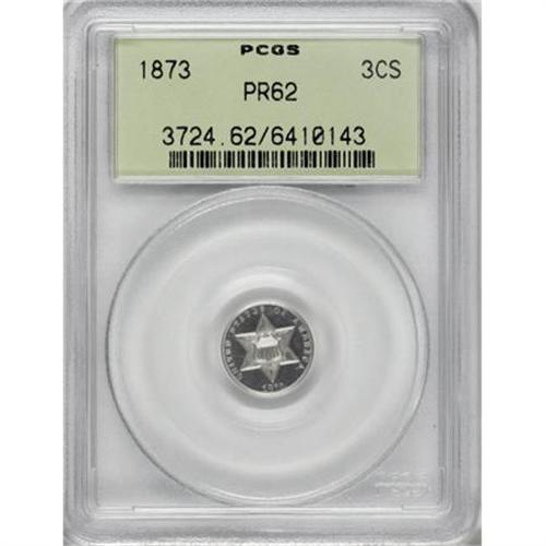 <B>1873 3CS PR62 PCGS.</B></I> This final-year, proof-only three cent silver has noticeable cameo contrast, but this feature is undesignated since the holder is old green label vintage. Well struck and untoned with a few wispy obverse hairlines.<BR><BR><B>Coin Engraver:</B> James B. Longacre<BR><BR><b>Shipping:</b> Coins & Currency (<a target="_blank" href="http://www.heritageauctions.com/common/shipping.php">view shipping information</a>)
