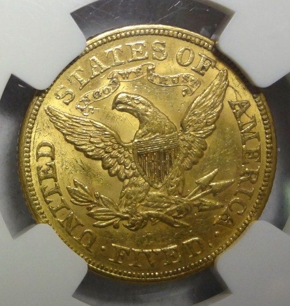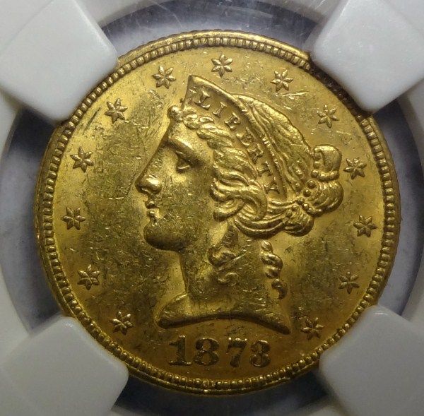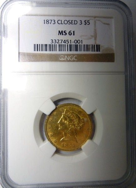 1873 $5.00 GOLD LIBERTY NGC CLOSED 3 MS61, EST.$1180.00-$1250.00