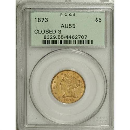 1873 $5 Closed 3 AU55 PCGS. PCGS Population (28/69