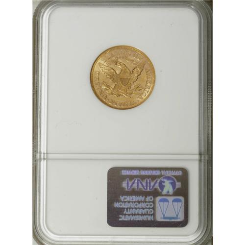 <B>1873 $5 Closed 3 MS62 NGC.</B></I> A bold striking with bright, frosty luster and an appealing reddish tint. The obverse exhibits a touch of scuffiness while field marks surrounding the eagle are more noticeable on the reverse. Census: 17 in 62, 10 finer (11/06).<BR><BR><b>Shipping:</b> Coin/Currency (<a target="_blank" href="http://www.heritageauctions.com/common/shipping.php">view shipping information</a>)