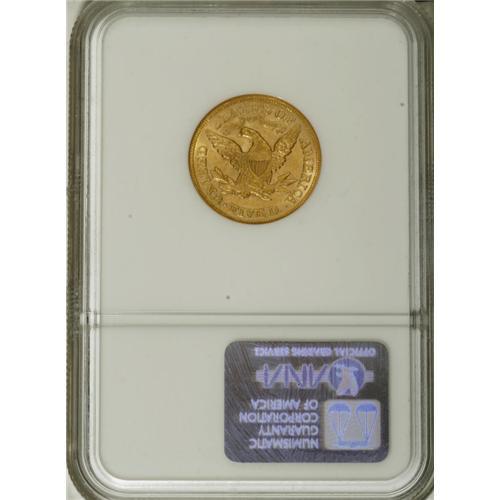 <B>1873 $5 Closed 3 MS62 NGC.</B></I> This canary-gold example has ample peripheral luster, a decent strike, and moderate field marks. The 2007 <I>Guide Book</B></I> Closed 3 mintage of 112,480 pieces is incorrect, since the figure excludes the Open 3 production. Census: 29 in 62, 8 finer (3/07).<BR><BR><b>Shipping:</b> Coins & Currency (<a target="_blank" href="http://www.heritageauctions.com/common/shipping.php">view shipping information</a>)