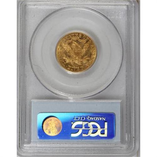 <B>1873 $5 Closed 3 MS62 PCGS.</B></I> This lustrous Mint State piece is held back from a finer grade by the presence of some moderate field abrasions that are largely confined to the obverse. The amber-gold coloration is a plus, along with the somewhat prooflike reverse. Population: 16 in 62, 15 finer (8/07).<BR><BR><B>Coin Engraver:</B> Christian Gobrecht<BR><BR><b>Shipping:</b> Coins & Currency (<a target="_blank" href="http://www.heritageauctions.com/common/shipping.php">view shipping information</a>)