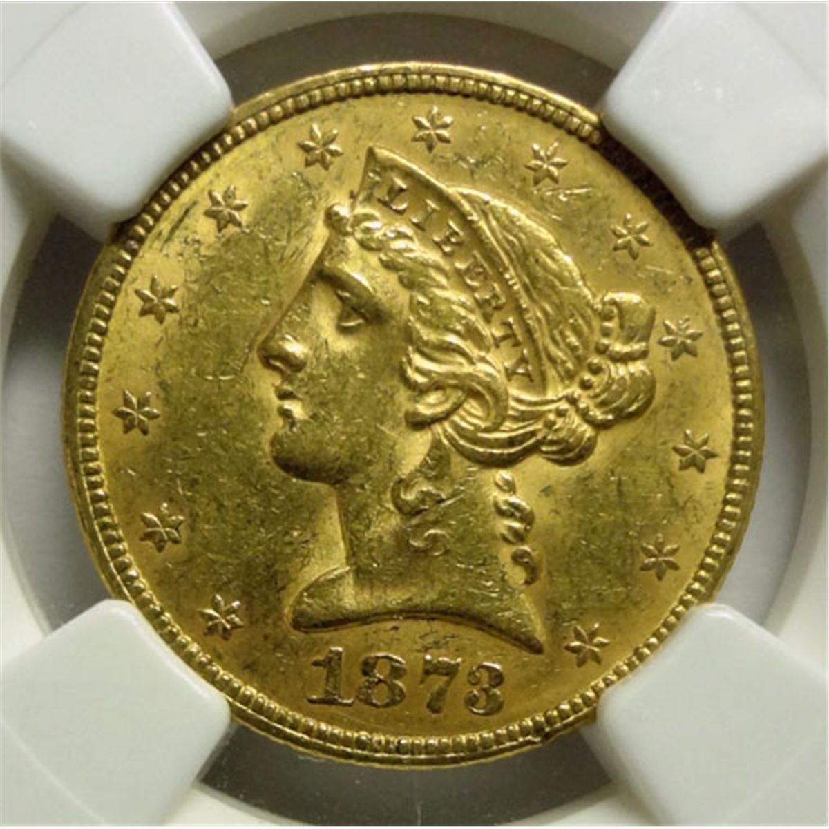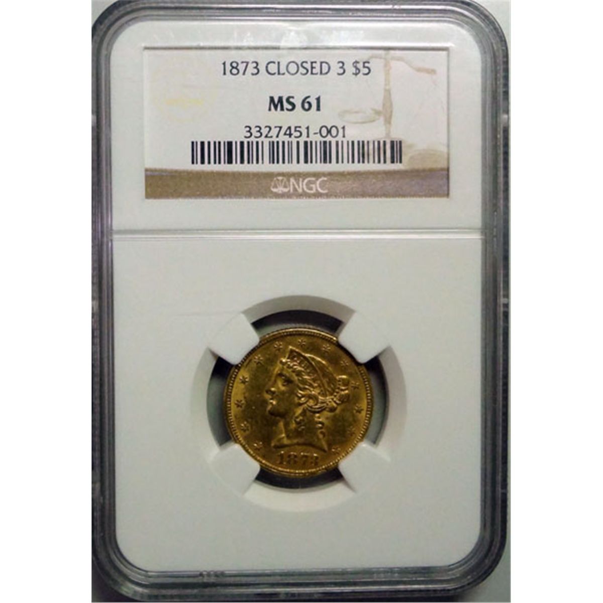 1873 $5 LIBERTY GOLD COIN NGC MS-61 CLOSED 3 RARE!