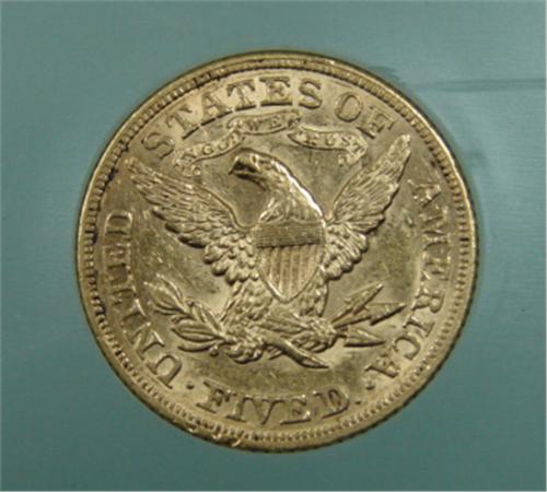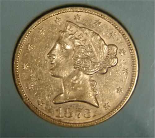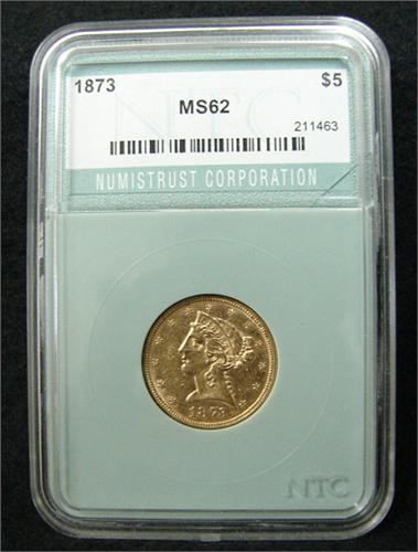 1873 $5 LIBERTY GOLD COIN. MS 62. 211463. Graded by NTC.