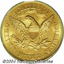 <table><tr><td><table><tr><td>1873 $5 Open 3 MS63 PCGS. The Open 3 is considerably scarcer than its Closed 3 counterpart and is an elusive coin to locate in the finer Mint State grades. The mintage for this P-mint issue is 112,505 coins and this coin displays rich reddish tinged mint luster with sharp definition, except on the eagle's neck as usual. A few light abrasions including one on Liberty's nose account for the grade. Population: 6 in 63, 6 finer (3/04). <BR><BR><B>Important notice:</B> Heritage usually auctions material at the rate of 200-250 lots per hour. On some occasions eBay Live bid software or the Internet may not be able to keep up with the pace of the auction. We recommend placing a realistic absentee bid now as insurance to avoid disappointment. Occasionally the auctioneer may eliminate or reject an eBay Live bid, and the auctioneer may also reopen a lot after the close of the eBay live bidding (usually because we missed an audience bid), and may reject your bid even if it shows you as the winning bidder. By bidding via eBay Live, you agree that Heritage may award the lot to another bidder at its sole discretion under the circumstances described above or any other reasonable circumstances. Since eBay bids are not shown to us until we open the lot on the floor, we treat those bids just like floor bids. In most cases the floor responds before the eBay bid is presented to us, due to Internet lag time, so for consistency we have made it a policy that floor bids are always considered first over tie eBay live bids. Also please note that all Heritage lots purchased through eBay Live carry a 20% Buyer's Premium. Please make sure you read the Terms and Conditions before you bid. <BR><BR><B>IMPORTANT ANNOUNCEMENT ABOUT RESERVES:</B> Heritage now divulges all reserves on its web site 7 days before every auction. If you want to know whether the reserve on this lot has been met, and if not, what the reserve amount is, please visit this lot page on the HeritageCoin.com web site, or email: bid@HeritageGalleries.com </span></font></td></tr></table></td></tr></table>