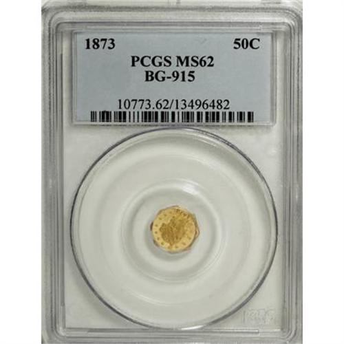 <B>1873 50C Liberty Octagonal 50 Cents, BG-915, Low R.4, MS62 PCGS.</B></I> PCGS Population (18/95). NGC Census: (1/8). (#10773)<BR><BR><b>Shipping:</b> Coins & Currency (<a target="_blank" href="http://www.heritageauctions.com/common/shipping.php">view shipping information</a>)