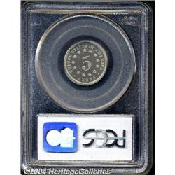 <B>1873<5C> Closed 3 PR64 Cameo PCGS.</B></I> The 1 in the date is lightly repunched below the upper serif and the base. A lightly toned near-Gem with flashy mirrors and reasonable cameo contrast. A curly lintmark (as struck) rests over the top of the shield, and a number of flyspecks are scattered over both sides of the coin. <BR><BR><B>Important notice:</B> Heritage usually auctions material at the rate of 200-250 lots per hour. On some occasions eBay Live bid software or the Internet may not be able to keep up with the pace of the auction. We recommend placing a realistic absentee bid now as insurance to avoid disappointment. Occasionally the auctioneer may eliminate or reject an eBay Live bid, and the auctioneer may also reopen a lot after the close of the eBay live bidding (usually because we missed an audience bid), and may reject your bid even if it shows you as the winning bidder. By bidding via eBay Live, you agree that Heritage may award the lot to another bidder at its sole discretion under the circumstances described above or any other reasonable circumstances. Since eBay bids are not shown to us until we open the lot on the floor, we treat those bids just like floor bids. In most cases the floor responds before the eBay bid is presented to us, due to Internet lag time, so for consistency we have made it a policy that floor bids are always considered first over tie eBay live bids. Also please note that all Heritage lots purchased through eBay Live carry a 20% Buyer's Premium. Please make sure you read the Terms and Conditions before you bid.
