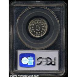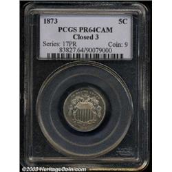 <TABLE cellSpacing=0 cellPadding=0 width="100%" bgColor=#000000 border=0><TBODY><TR><TD width="100%"><TABLE cellSpacing=1 cellPadding=3 width="100%" border=0><TBODY><TR><TD width="100%" bgColor=#79735c><FONT face=arial color=#ffffff size=3><B>Description</B> </FONT></TD></TR><TR><TD width="100%" bgColor=#ffffff><FONT face=arial size=2><B>1873 5C Closed 3 PR64 Cameo PCGS.</B></I> Crisply impressed with rich olive toning and scattered mottling, in tan and beige colors. The underlying fields remain quite reflective, and they provide a backdrop against which the well-frosted devices are pleasingly contrasted. Population: 8 in 64, 11 finer (8/03). </FONT></TD></TR></TBODY></TABLE></TD></TR></TBODY></TABLE><BR><A name=PricesRealized></A><TABLE cellSpacing=0 cellPadding=0 width="100%" bgColor=#000000 border=0><TBODY><TR><TD width="100%"><TABLE cellSpacing=1 cellPadding=3 width="100%" border=0><TBODY><TR><TD width="100%" bgColor=#79735c><A name=PR><FONT face=arial color=#ffffff size=3><B>Previous Prices from Heritage Auctions</B> </FONT></A></TD></TR><TR><TD bgColor=#f6f6ed><TABLE cellSpacing=0 cellPadding=0 width="100%" border=1><TBODY><TR><TD align=middle width="33%"><B>Date</B></TD><TD align=middle width="33%"><B>Service</B></TD><TD align=middle width="33%"><B>Price</B></TD></TR><TR bgColor=whitesmoke><TD width="33%"><B>08/06/2003</B></TD><TD width="33%">NGC</TD><TD width="33%">$483.00</TD></TR></TBODY></TABLE></TD></TR><TR><TD bgColor=#ffffff><FONT face=arial size=1 ?>PLEASE NOTE: All prices realized reflect the final hammer price PLUS the buyer's premium in auctions that charge a buyer's premium. Each item has a notation at the top of the listing indicating whether that lot included a buyer's premium. Example: A item that sells with a final hammer price of $100 and a 20% buyer's premium will display with a price realized of $120. All information listed is intended to be as accurate as possible, but errors are possible. Please use this guide carefully and inform us of any inaccuracies. </FONT></TD></TR></TBODY></TABLE></TD></TR></TBODY></TABLE><BR><TABLE cellSpacing=0 cellPadding=0 width="100%" bgColor=#000000 border=0><TBODY><TR><TD width="100%"><TABLE cellSpacing=1 cellPadding=3 width="100%" border=0><TBODY><TR><TD width="100%" bgColor=#79735c colSpan=6><FONT face=arial color=#ffffff size=3><B>Price Guide*</B> </FONT></TD></TR><TR bgColor=#f6f6ed><TD align=middle><B>Grade</B> </TD><TD align=middle><B>Coin World<BR>(Trends)</B> </TD><TD align=middle><B>Numismedia<BR>Retail</B> </TD><TD align=middle><B>Numismedia<BR>Wholesale</B> </TD><TD align=middle><B>Coin<BR>Universe</B> </TD><TD align=middle><B>Heritage<BR>Value Index</B> </TD></TR><TR bgColor=#ffffff><TD align=middle>63</TD><TD align=right>---</TD><TD align=right>---</TD><TD align=right>---</TD><TD align=right>---</TD><TD align=right>$678.46</TD></TR><TR style="FONT-WEIGHT: bold" bgColor=#cccfdd><TD align=middle>64</TD><TD align=right>---</TD><TD align=right>---</TD><TD align=right>---</TD><TD align=right>---</TD><TD align=right>$732.98</TD></TR><TR bgColor=#ffffff><TD align=middle>65</TD><TD align=right>---</TD><TD align=right>---</TD><TD align=right>---</TD><TD align=right>$1,000.00</TD><TD align=right>$787.50</TD></TR><TR bgColor=#ffffff><TD colSpan=6><FONT size=1>*All information listed is intended to be as accurate as possible, but errors are possible. No item may be returned or refused based on this information which is provided as a service to our customers. You should contact each pricing source directly to determine the accuracy of this information. </FONT></TD></TR></TBODY></TABLE></TD></TR></TBODY></TABLE><BR><TABLE cellSpacing=0 cellPadding=0 width="100%" bgColor=#000000 border=0><TBODY><TR><TD width="100%"><TABLE cellSpacing=1 cellPadding=3 width="100%" border=0><TBODY><TR><TD width="100%" bgColor=#79735c><FONT face=arial color=#ffffff size=3><B>Population Guide</B> </FONT></TD></TR><TR bgColor=#ffffff><TD align=middle><!-- Begin Output of Population Grid--><TABLE cellSpacing=0 cellPadding=0 width="100%" border=0><TBODY><TR><TD vAlign=center><TABLE cellSpacing=0 width="100%" border=1 cellsadding="3"><TBODY><TR><TD vAlign=center><TABLE cellSpacing=0 cellPadding=3 width="100%" border=1><TBODY><TR><TD vAlign=center align=middle bgColor=#f0f1e8 colSpan=2 <CENTER><FONT face=Arial size=2><B>PCGS Pop </B></FONT><CENTER></CENTER></TD><TD vAlign=center align=middle bgColor=#f0f1e8 colSpan=2><CENTER><FONT face=Arial size=2><B>NGC Pop</B></CENTER></FONT></TD></TR><TR><TD vAlign=center><FONT face=Arial size=2>(64)</FONT> </TD><TD vAlign=center align=right><FONT face=Arial size=2>8</FONT> </TD><TD vAlign=center><FONT face=Arial size=2>(64)</FONT> </TD><TD vAlign=center align=right><FONT face=Arial size=2>0</FONT> </TD></TR><TR><TD vAlign=center><FONT face=Arial size=2>(>64)</FONT> </TD><TD vAlign=center align=right><FONT face=Arial size=2>11</FONT> </TD><TD vAlign=center><FONT face=Arial size=2>(>64)</FONT> </TD><TD vAlign=center align=right><FONT face=Arial size=2>0</FONT> </TD></TR></TBODY></TABLE></TD></TR></TBODY></TABLE></TD></TR></TBODY></TABLE><!-- End Output of Population Grid--> Important notice: Heritage usually auctions material at the rate of 200-250 lots per hour. On some occasions eBay Live bid software or the Internet may not be able to keep up with the pace of the auction. We recommend placing a realistic absentee bid now as insurance to avoid disappointment. Occasionally the auctioneer may eliminate or reject an eBay Live bid, and the auctioneer may also reopen a lot after the close of the eBay live bidding (usually because we missed an audience bid), and may reject your bid even if it shows you as the winning bidder. By bidding via eBay Live, you agree that Heritage may award the lot to another bidder at its sole discretion under the circumstances described above or any other reasonable circumstances. Also please note that all Heritage lots purchased through eBay Live carry a 20% Buyer's Premium. Please make sure you 