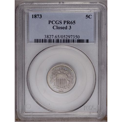 1873 5C Closed 3 PR65 PCGS. A thin veneer of ice-blue 1873[5C] Closed 3 PR65 PCGS.