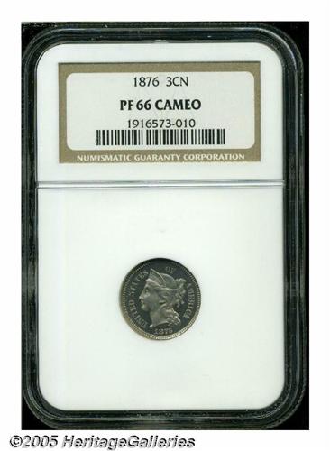 <B>1873<5C> Closed 3 PR66 Cameo NGC.</B></I> The 1 in the date is lightly repunched. A well struck and brilliant Gem that has good cameo contrast. Beautifully preserved and highly attractive.
