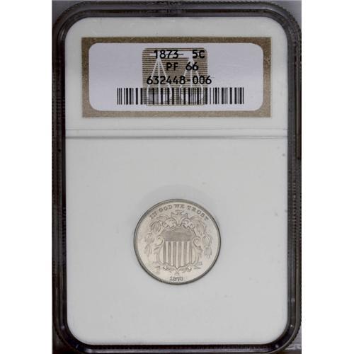 1873 5C Closed 3 PR66 NGC. Luminous Proof surfaces are 1873[5C] Closed 3 PR66 NGC.