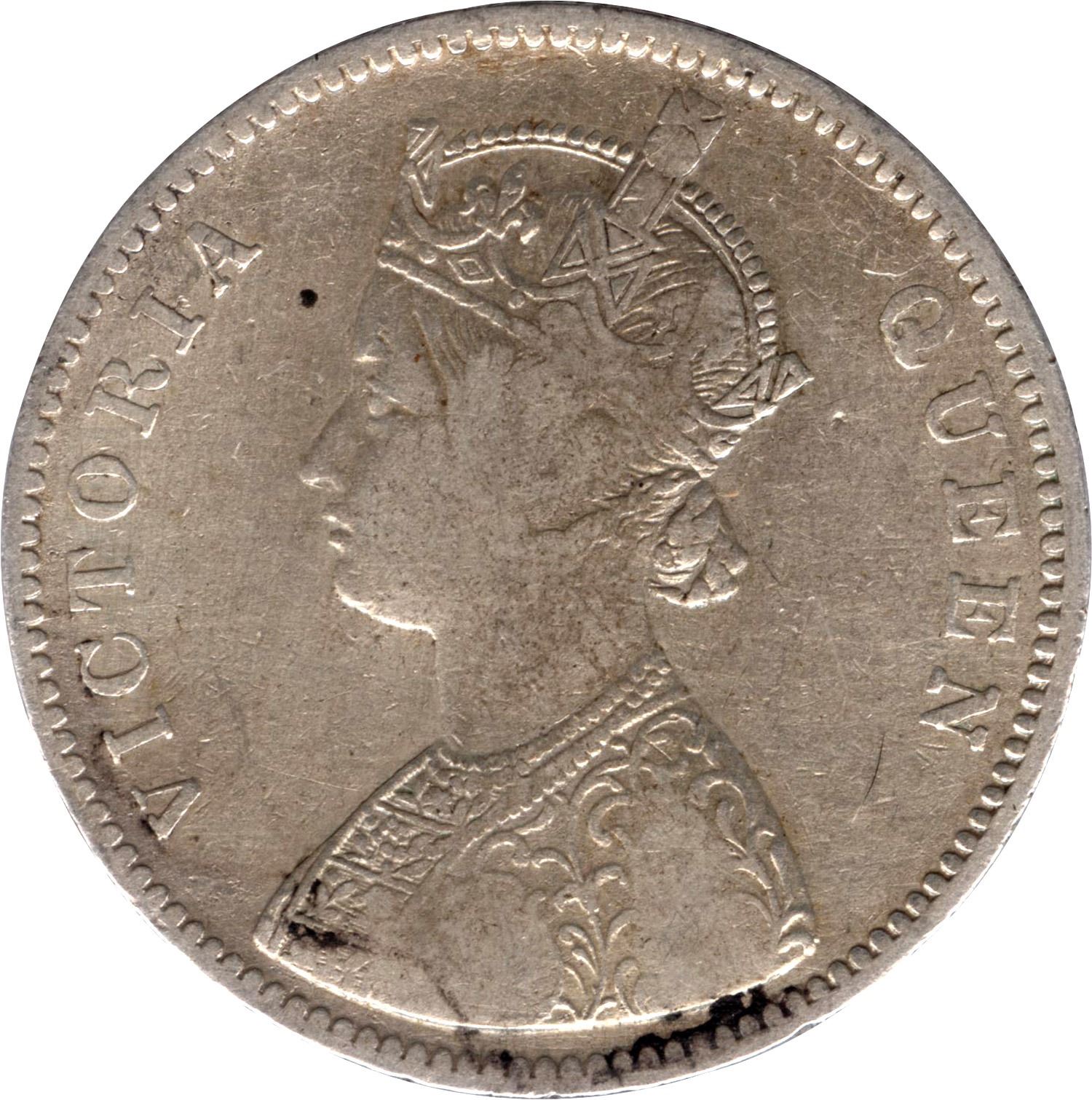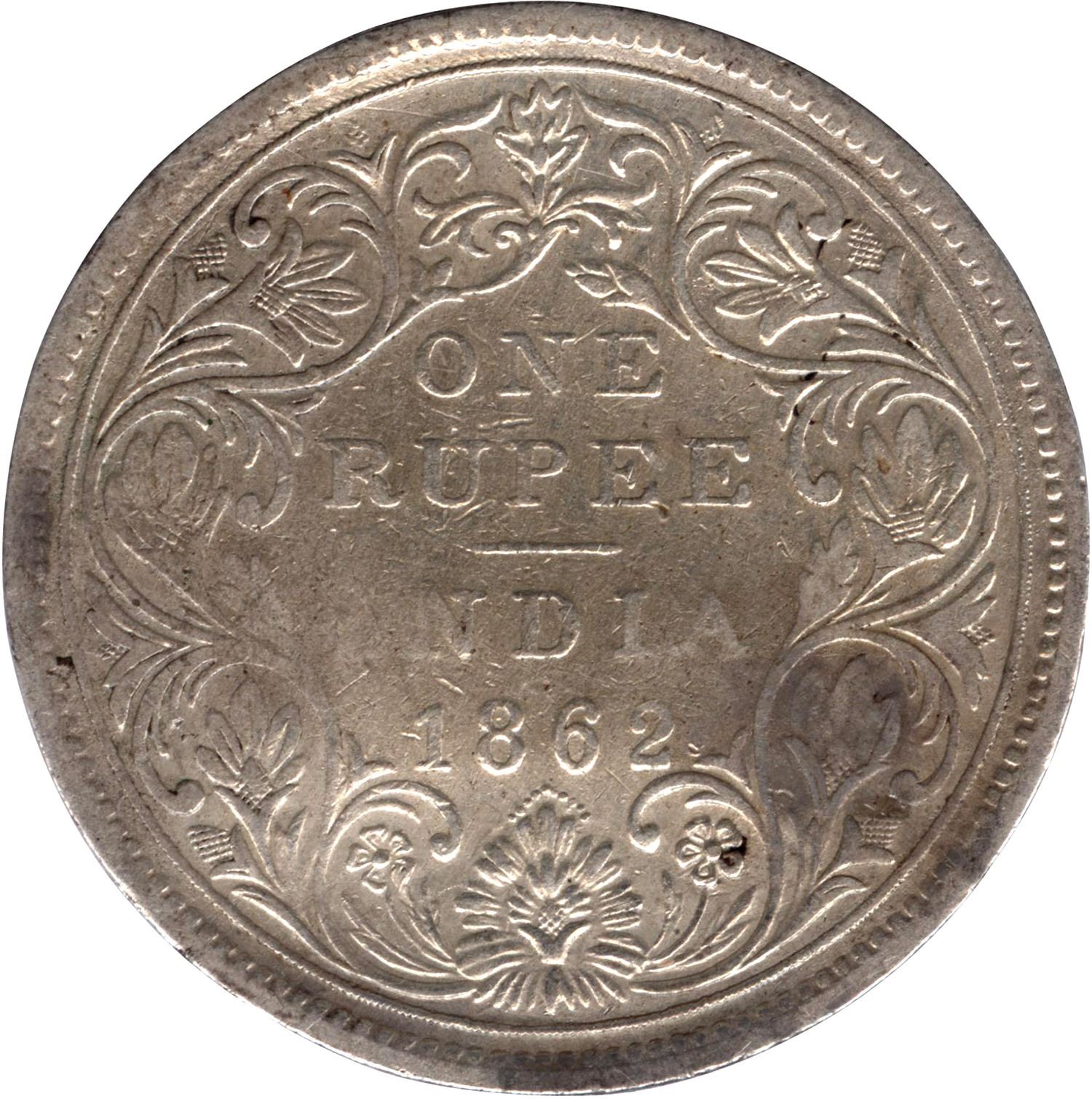 1862,Victoria Queen,Silver Rupee,Bombay Mint,A/II/0/11 (10+1 microdot),without initial J, the actual year of minting 1873, (PR # 94/GK # 341),about very fine,Scarce.