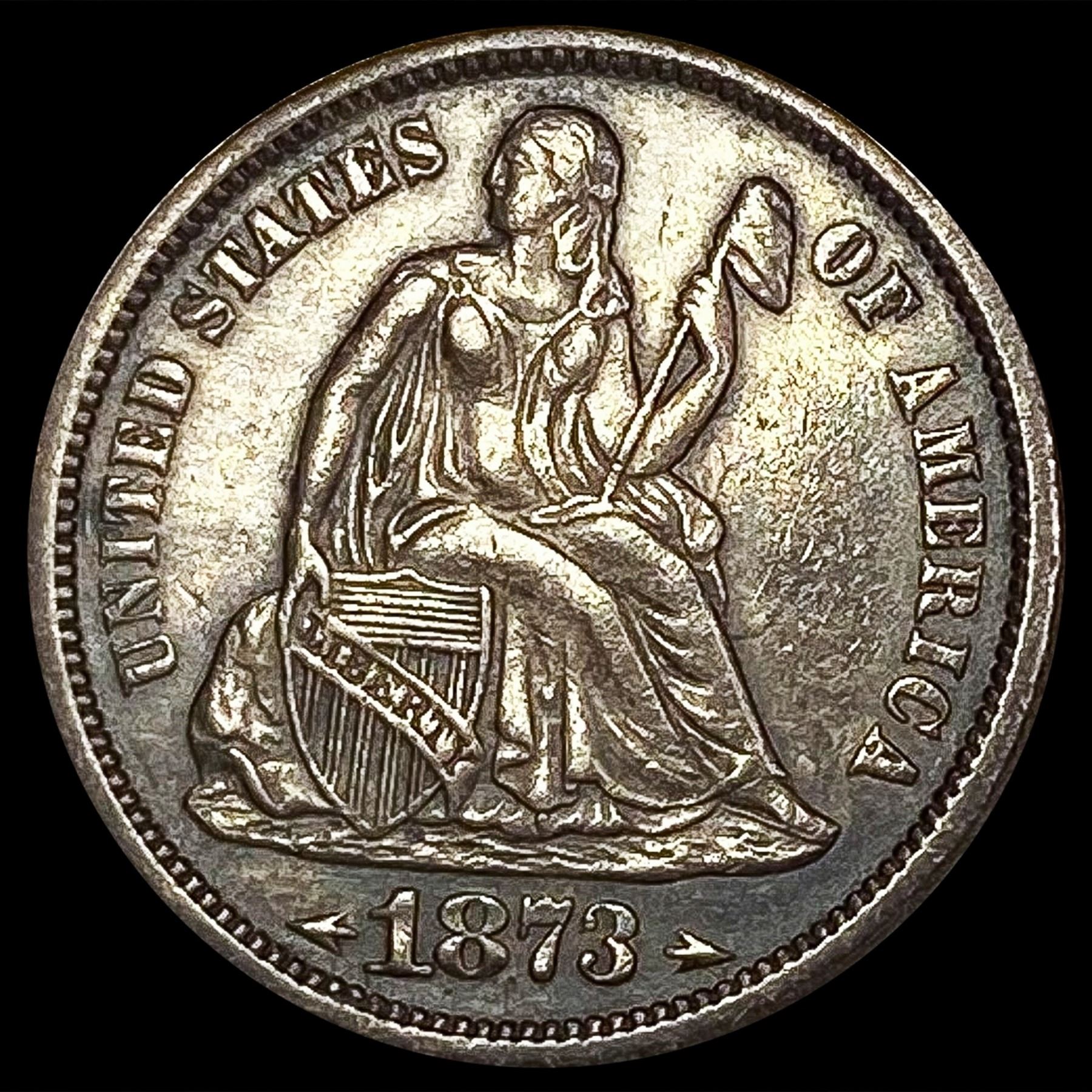 1873 Arrows Seated Liberty Dime CLOSELY UNCIRCULAT
