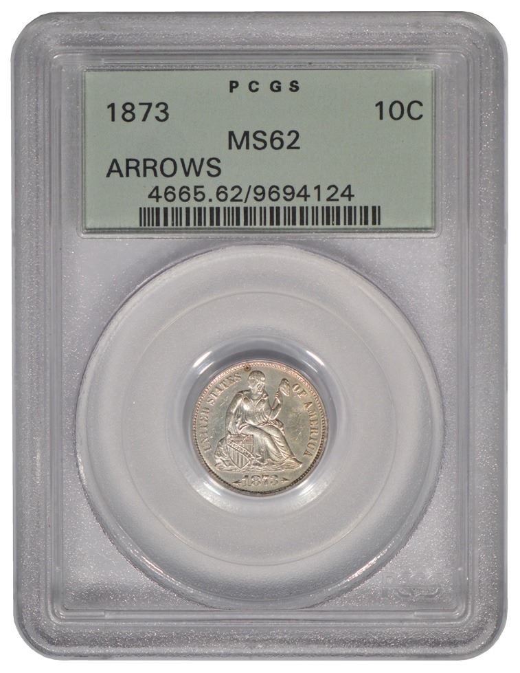 One 1873 Arrows Seated Liberty Dime PCGS MS62.
