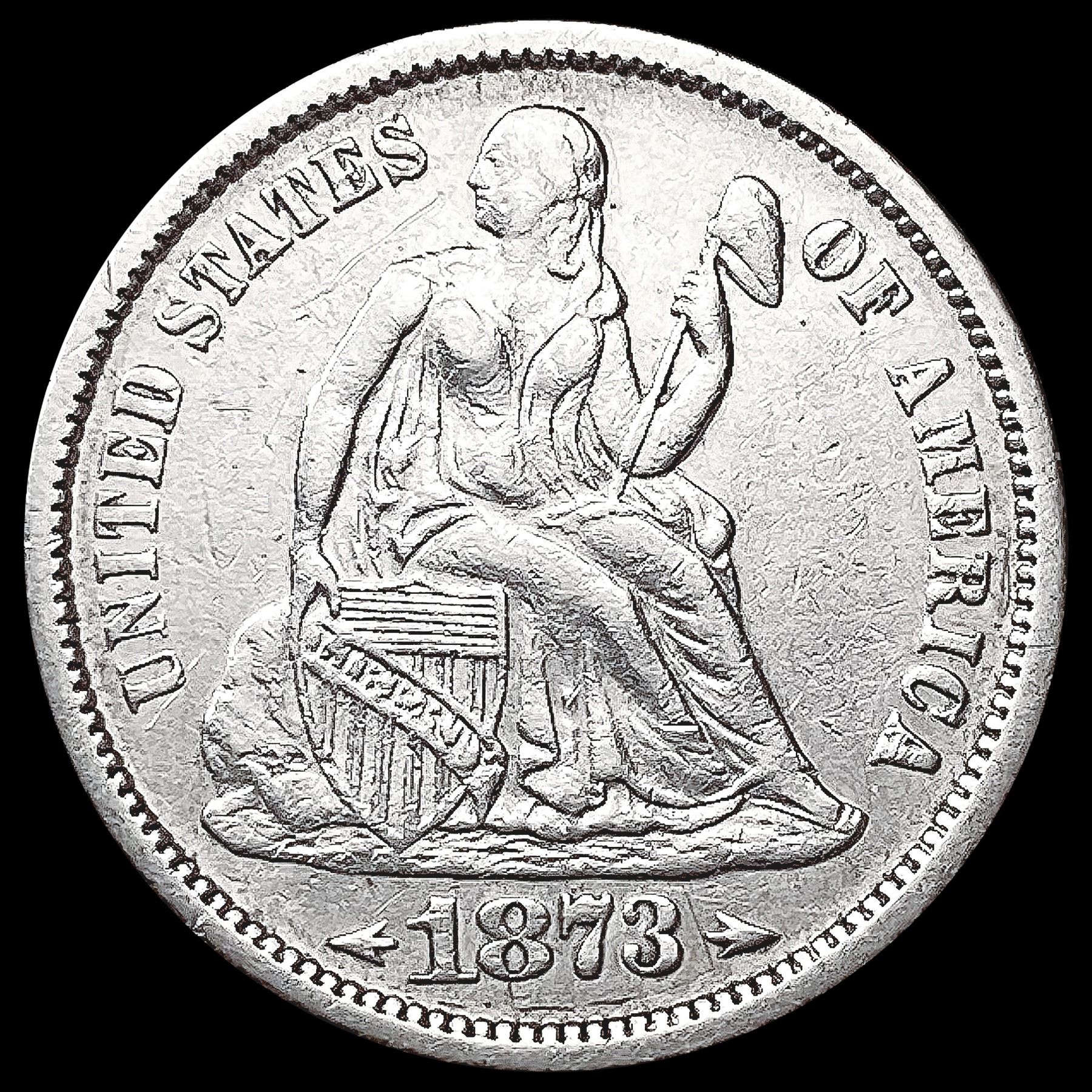 1873 Arws Mercury Dime CLOSELY UNCIRCULATED