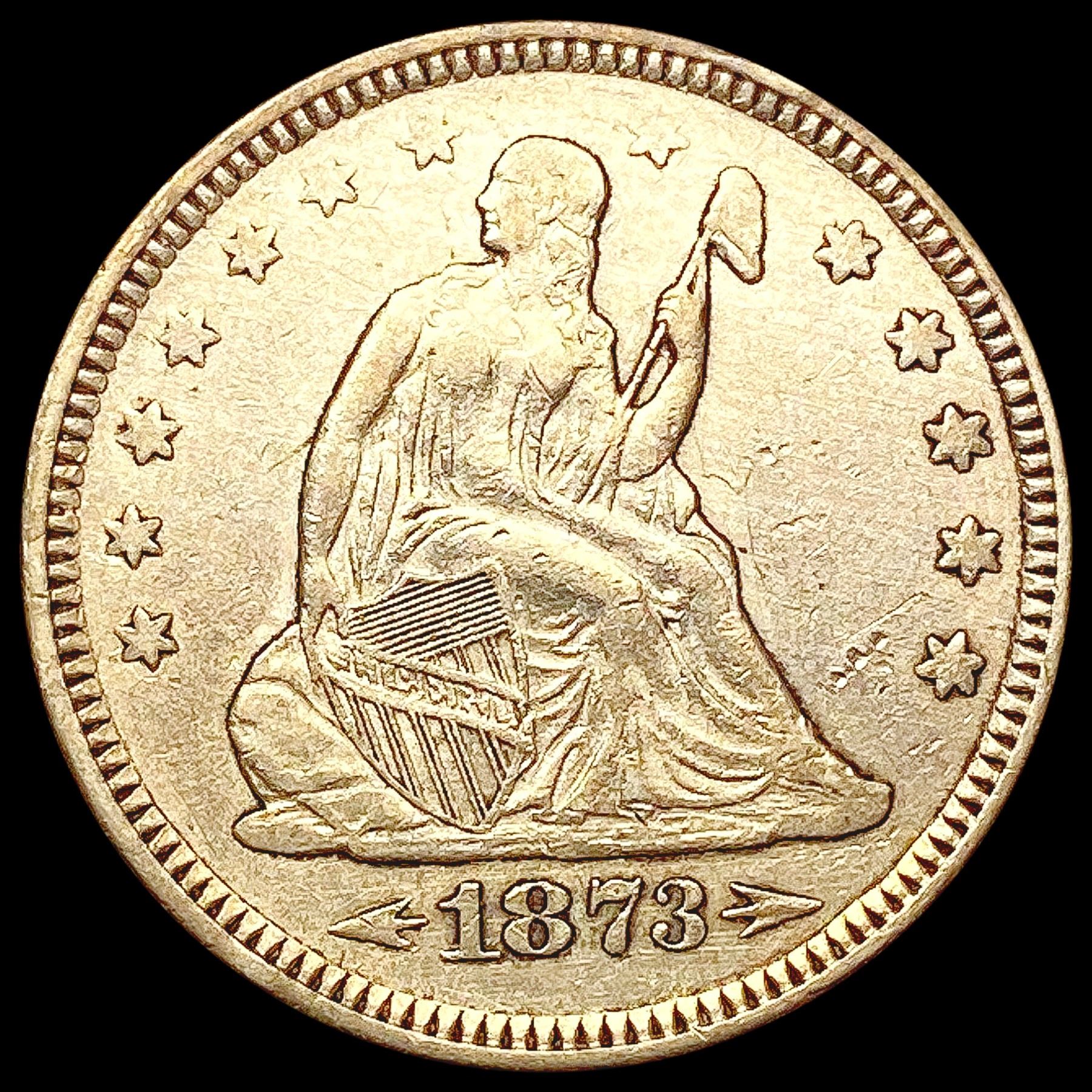 1873 Arws Seated Liberty Quarter CLOSELY UNCIRCULATED