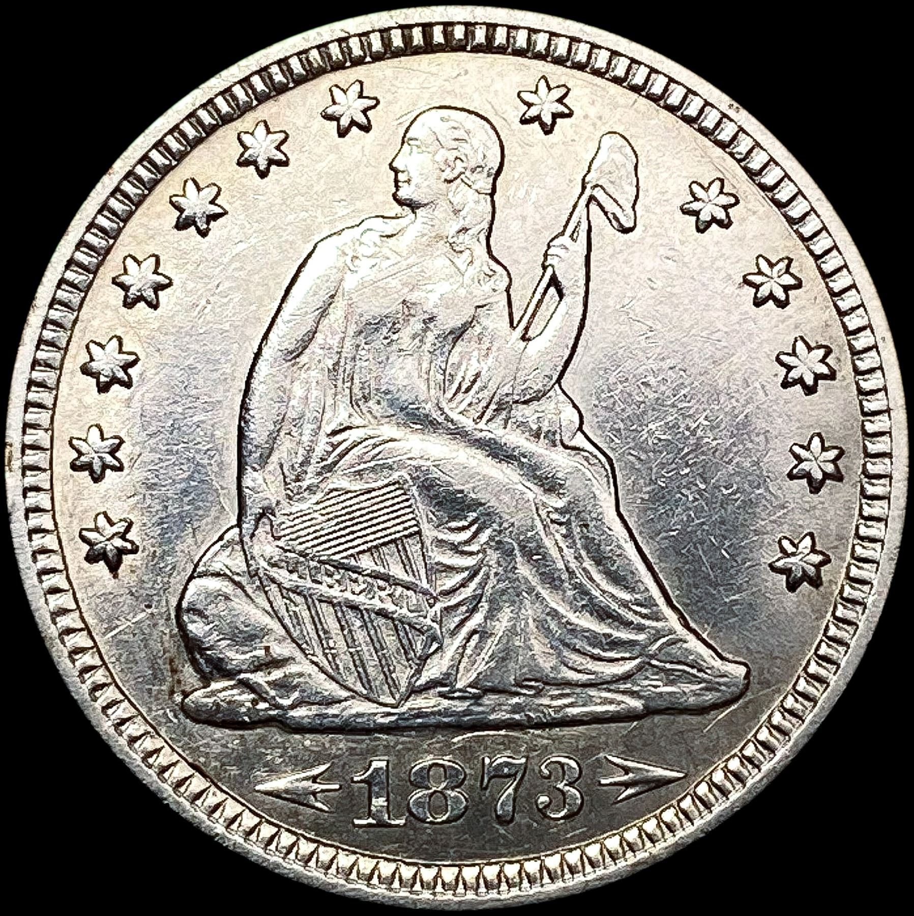 1873 Arws Seated Liberty Quarter CLOSELY UNCIRCULA