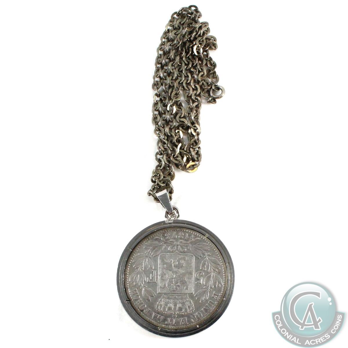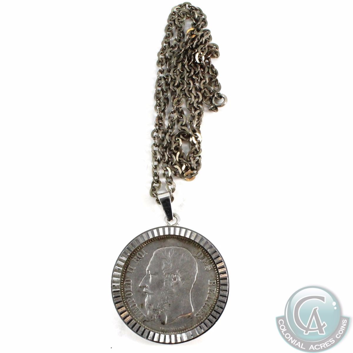 1873 Belgium 5 Francs in bezel.