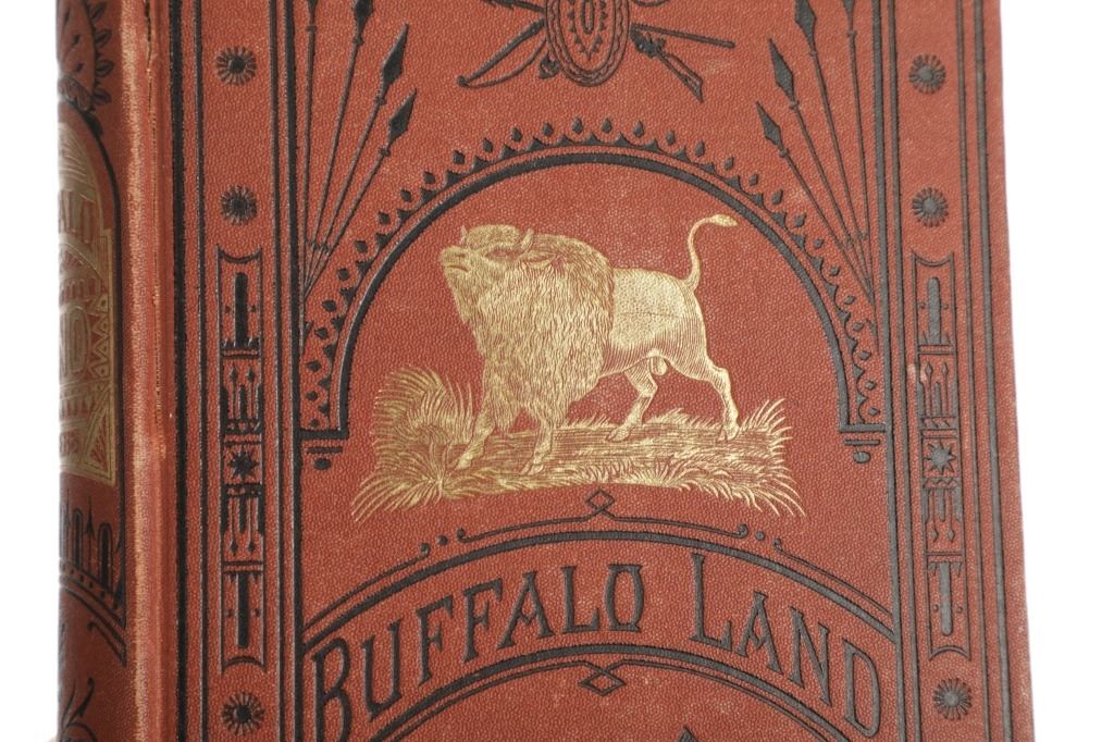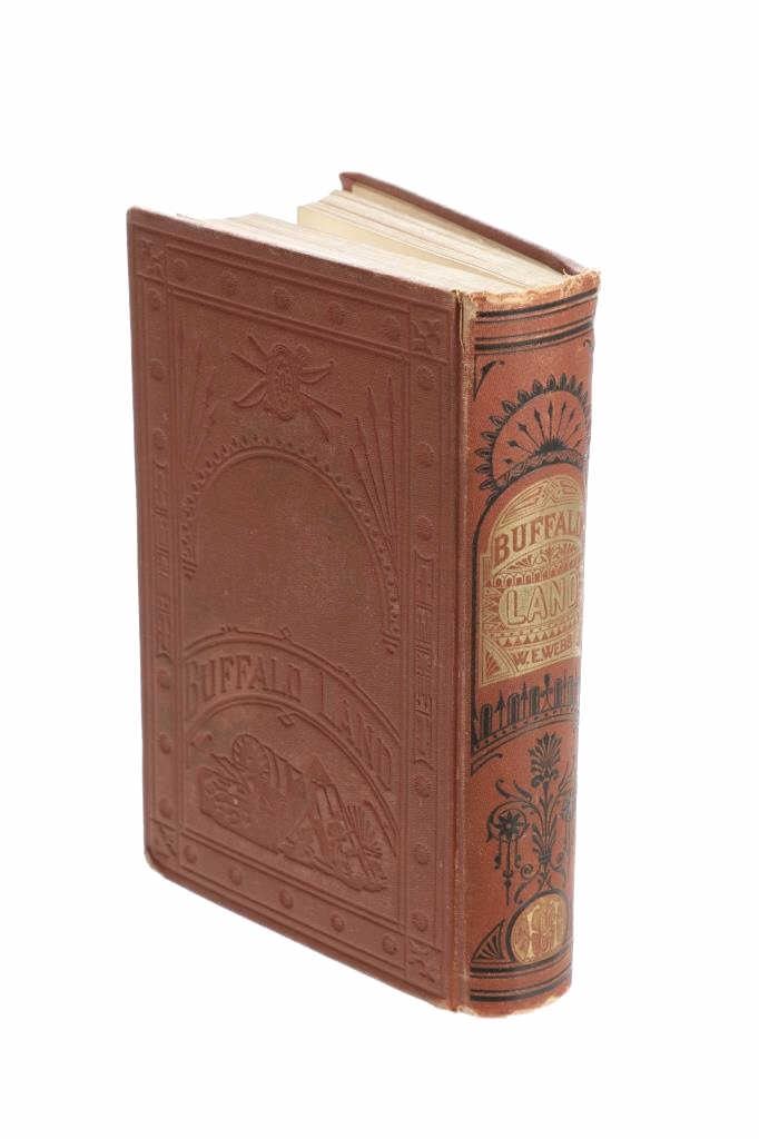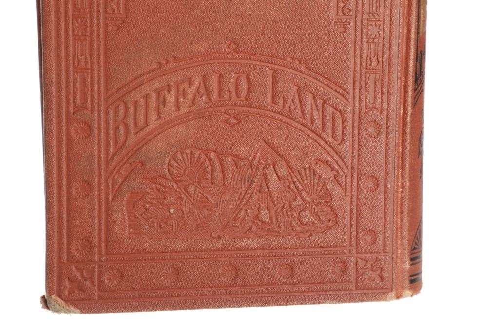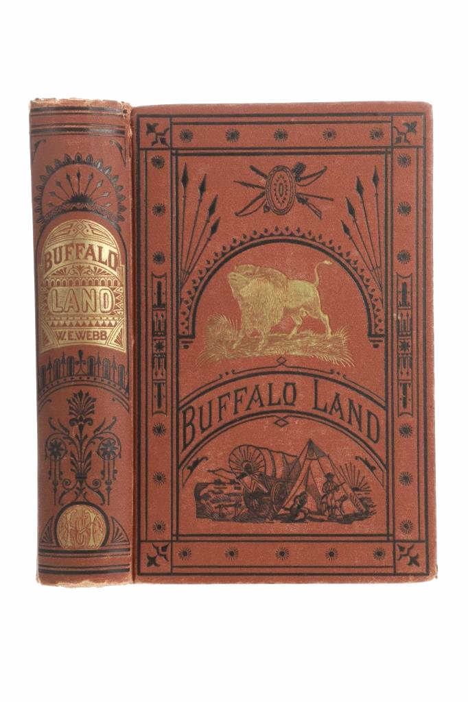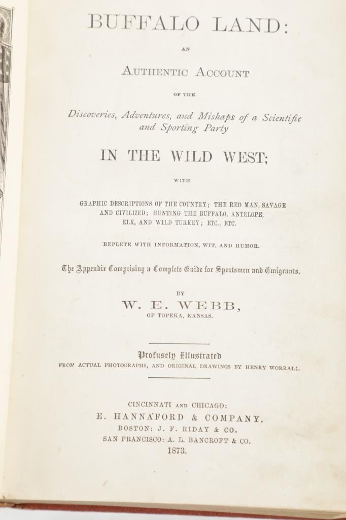 Featured in this lot is this 1873 of "Buffalo Land: An Authentic Account of the discoveries, Adventures, and Mishaps of a Scientific and Sporting Party in the Wild West" written by W.E. Webb and published in 1873. The book is a wonderful narrative of life in the Western Frontier during the early to late 1800's. The book features a illustrated and embossed cover on red cloth covering with gilt illustration on the cover and gilt lettering along the spine. The condition of this book is good with some wear to the corners of the cover and the top and bottom portion of the spine but otherwise in good overall condition. The measurements of this book are 8 7/8" x 6" x 1 5/8"