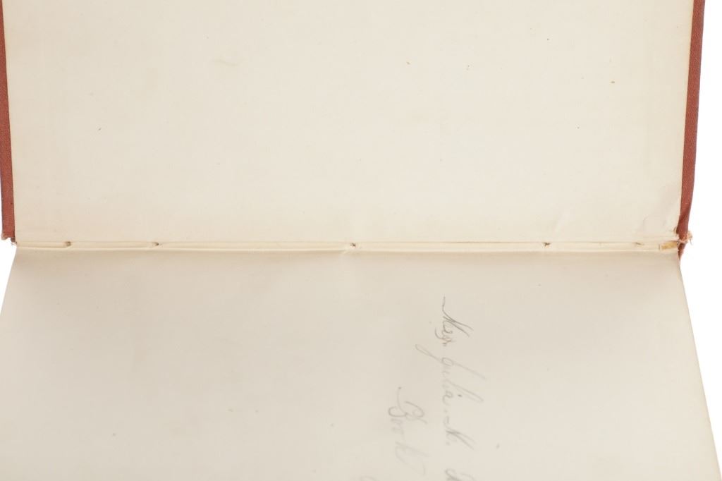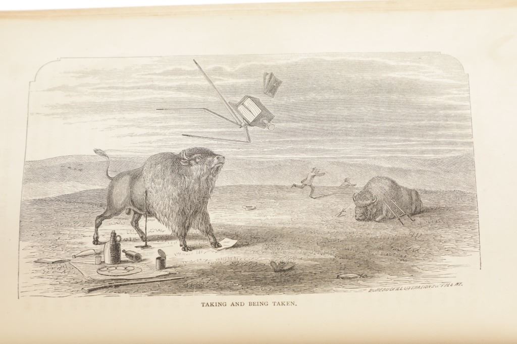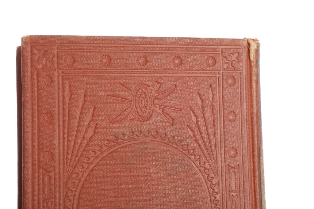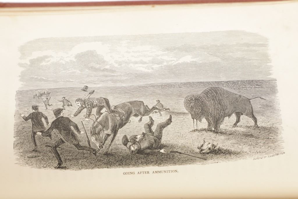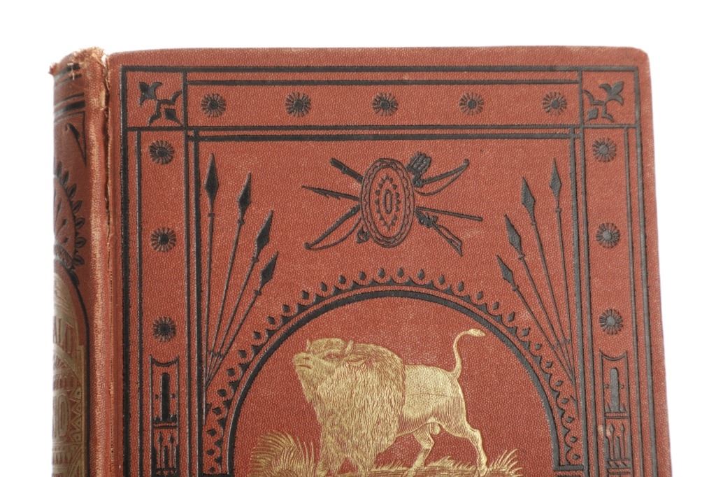 Featured in this lot is this 1873 of "Buffalo Land: An Authentic Account of the discoveries, Adventures, and Mishaps of a Scientific and Sporting Party in the Wild West" written by W.E. Webb and published in 1873. The book is a wonderful narrative of life in the Western Frontier during the early to late 1800's. The book features a illustrated and embossed cover on red cloth covering with gilt illustration on the cover and gilt lettering along the spine. The condition of this book is good with some wear to the corners of the cover and the top and bottom portion of the spine but otherwise in good overall condition. The measurements of this book are 8 7/8" x 6" x 1 5/8"