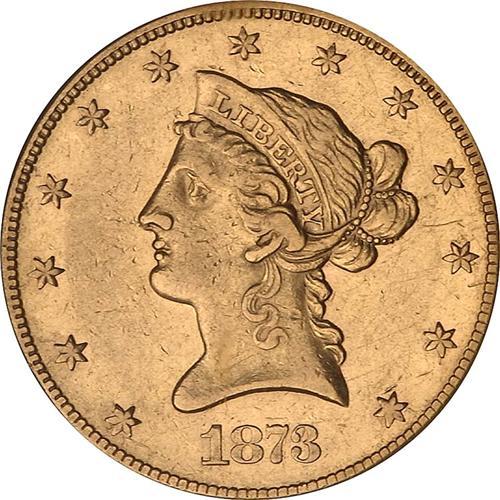 From a mintage of only 4,543 coins. Rare repunched date not visible to the naked eye, but the TEN D. is clearly doubled as described by Breen. With a total mintage of 4543 for all three varieties, this coin has a better than average strike for the desirable Carson City Mint. Only eighteen better and unknown in uncirculated. CDN bids $7400 and trends at $20,000.