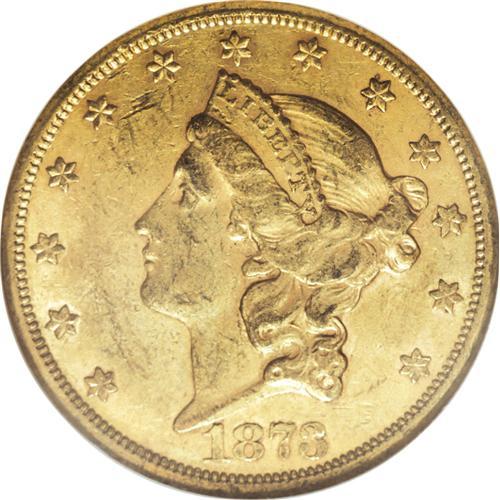 <B>1873-CC $20 AU58 NGC.</B></I> A seminal year in U.S. numismatics, 1873 was, among its other claims to fame, the year that gold deposits peaked at the Carson City Mint, at about $5 million. Yet the gold coin mintages were only 10% of that total, as much of the deposit would not be coined until 1874 (Goe, <I>The Mint on Carson Street).</B></I> Carson City produced 22,410 doubles eagles in 1873, all of the Close 3 variety, and many survivors are found quite bagmarked and unattractive, averaging AU50 or so. The present coin shows light evidence of circulation, with a few light scuffs on Liberty's cheek, semiprooflike surfaces, and radiant luster. The reverse is quite high-end for the grade, and the only mentionable distraction is a couple of obverse scrapes near star 5.<BR><BR><b>Shipping:</b> Coins & Currency (<a target="_blank" href="http://www.heritageauctions.com/common/shipping.php">view shipping information</a>)