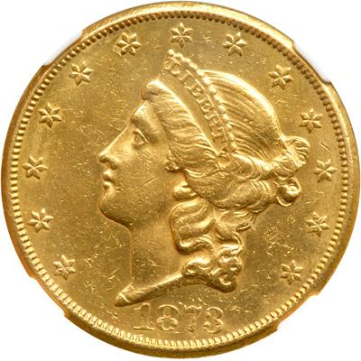1873-CC $20 Liberty. Harshly cleaned. Only 22,410 pieces minted. It seems our consignors favored the scarce 1873-CC twenties, since we offer several medium to moderately priced examples in the sale (PCGS # 8968) .
