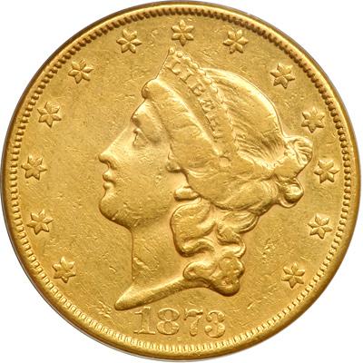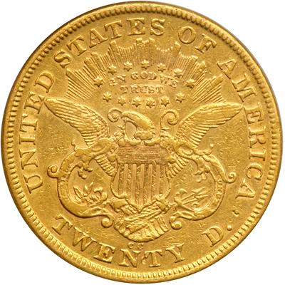 1873-CC $20 Liberty PCGS graded Genuine. PCGS Genuine, Our grade is sharpness of VF Cleaned. 22,410 minted. Another, more affordable example of this elusive CC-mint rarity (PCGS # 8968) .